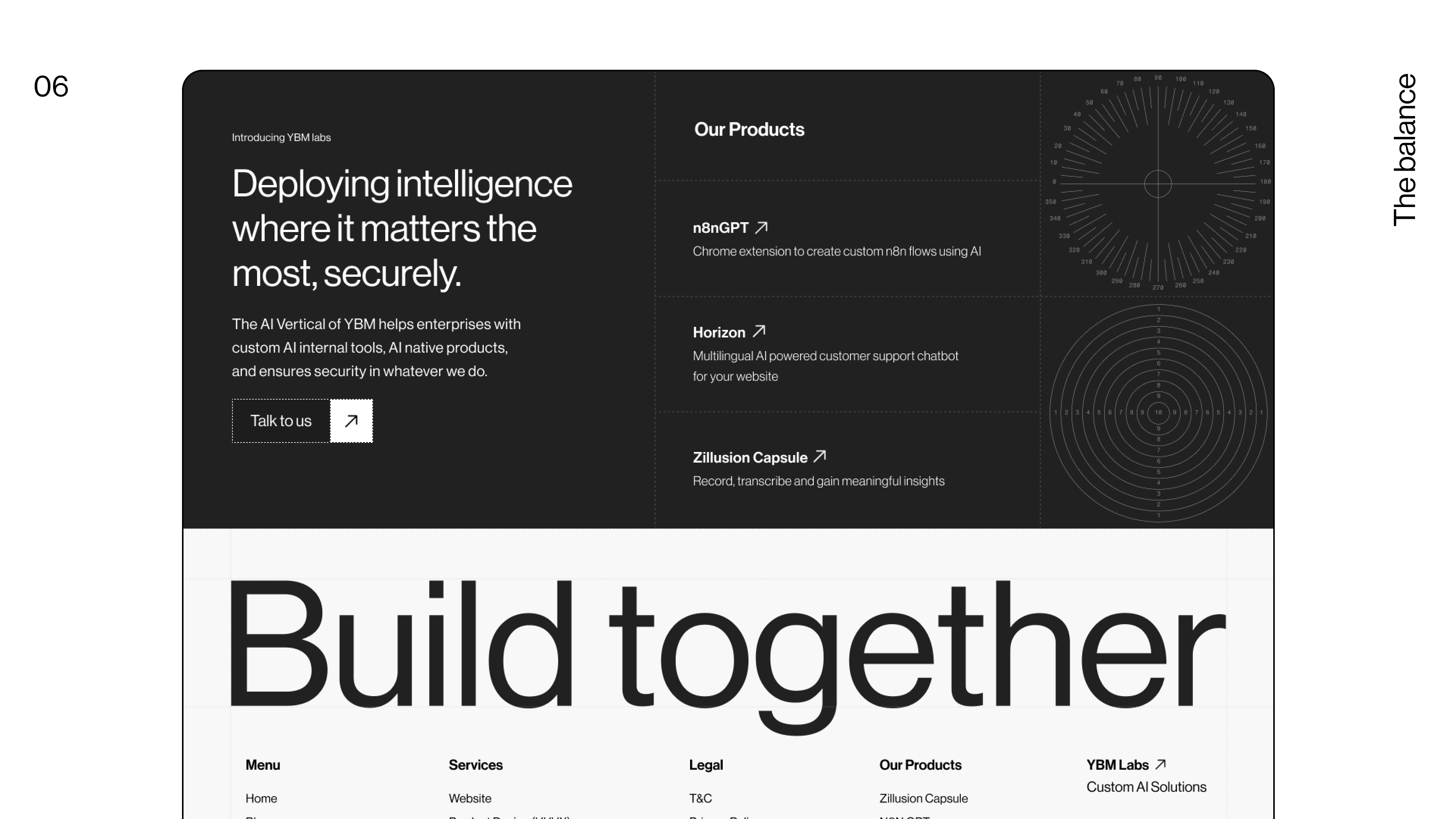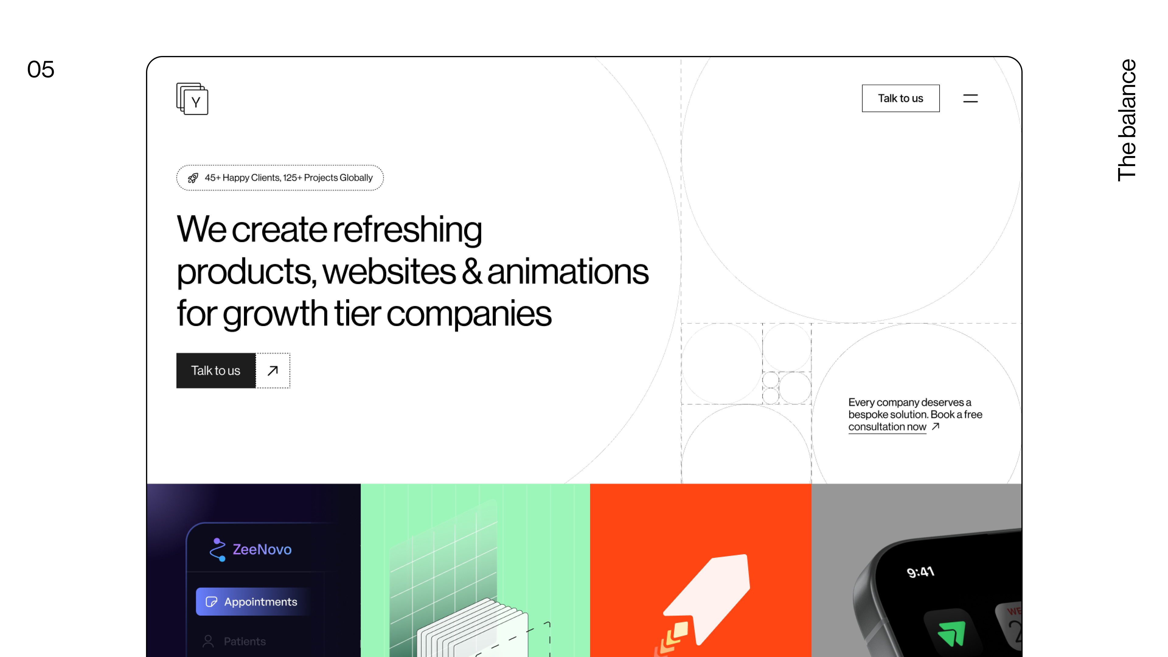 We stuck to the basics: Fibonacci-inspired geometric patterns and grids, and we made them our own. A mix of old design principles and modern trends, keeping it purely black and white, nicely contrasting with flashes of different colours present in our portfolio. All of this while still communicating exactly who we are, what we do, and what we aim to be.